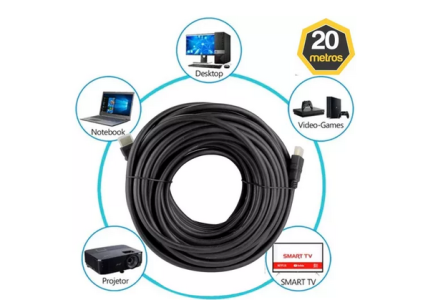 Cabo Hdmi 20m 4k High Speed Blindado Resistente Pino Dourado