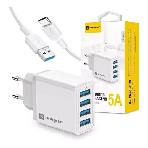 Carregador Sumexr com 4 Entradas Usb 5A com cabo Type C - SX-F8-C